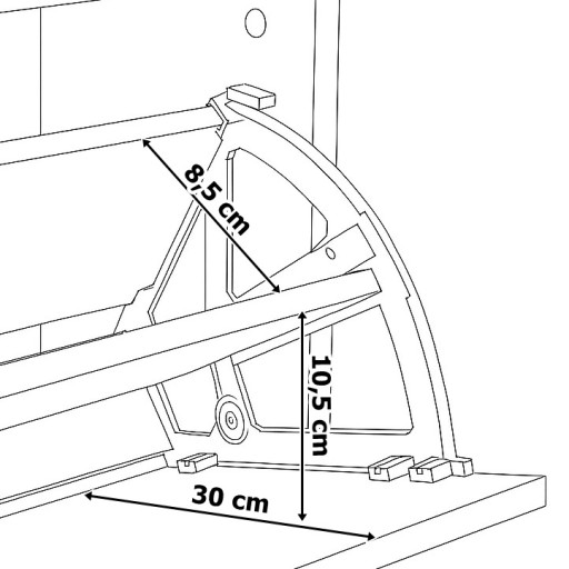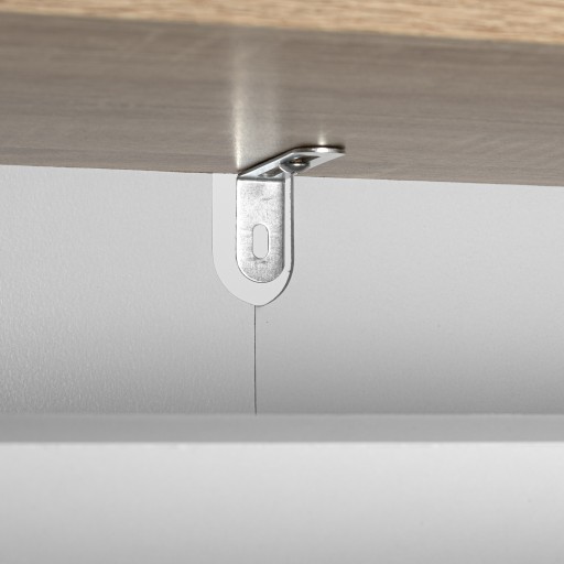Szafka posiada haczyk, za pomocą którego można ją przymocować do ściany i zapobiec przewróceniu się mebla.