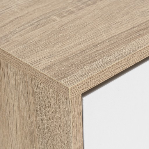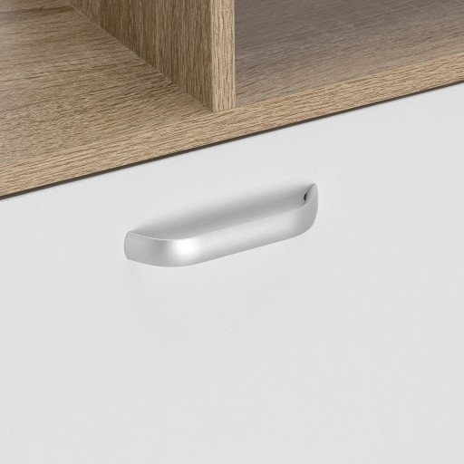 Biel, dąb sonoma oraz srebrne uchwyty wpasują się w nowoczesne i tradycyjne wnętrza, dodając im elegancji.