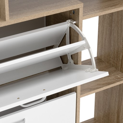 УЗКИЙ ШКАФ ДЛЯ ОБУВИ, БЕЛЫЙ, ДУБ СОНОМА, С ПОЛКАМИ ДЛЯ ПРИХОЖЕЙ