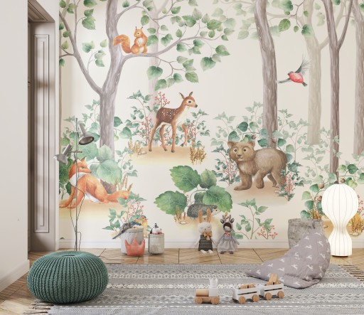 Fototapeta na ścianę dla dzieci z motywem leśnych zwierząt to doskonała propozycja dla rodziców poszukujących oryginalnych rozwiązań dekoracyjnych dla dziecięcego pokoju.