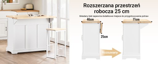 Przestronny blat roboczy można szybko powiększyć dzięki składanej części. Idealny podczas gotowania, serwowania i przyjmowania gości.