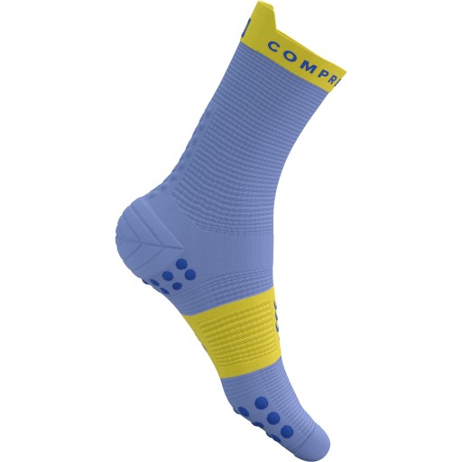 🧦 Skarpety Kompresyjne COMPRESSPORT PRORACING SOCKS V4 RUN HIGH Skarpety do Biegania Fiołkowe/Żółte 🧦
