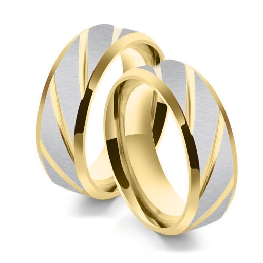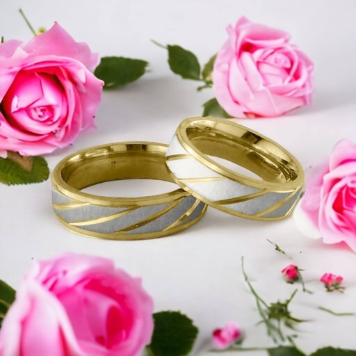 Luksusowe obrączki ślubne wykonane z najwyższej jakości stali szlachetnej, chirurgicznej 316L. Te obrączki to wyjątkowo szlachetne połączenie stali i złota oraz błyszczących znanych na całym świecie Austriackich szlifowanych cyrkonii, które zdobią obrączkę damską. Perfekcyjne wykonanie z wysoką dbałością o wszelkie detale oraz połysk gwarantują produkt najwyższej jakości. Doskonała kompozycja stworzona, by cieszyć, zachwycać i podkreślać miłość, jaką darzą się osoby decydujące się na wspólne życie. Idealne obrączki, które chciałoby się nosić na palcu przez cały czas i nie zdejmować ich nawet na chwilę.
