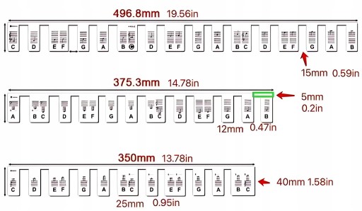 Każda nakładka ma czytelne oznaczenia dźwięków, dzięki czemu szybko nauczysz się, gdzie znajdują się poszczególne nuty. To doskonała pomoc w nauce gry zarówno dla dzieci, jak i dorosłych.