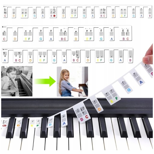 NAKŁDAKI SILIKONOWE NA KLAWIATURĘ PIANINO NUTY DO NAUKI GRY NA PIANINIE