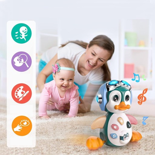Muzyczna zabawka pingwin odpowiednia dla dzieci w wieku od 6 do 12 miesięcy będzie się poruszać, odtwarzać muzykę i świecić światłem w trybie "GO". Zachęci dziecko do gonienia i raczkowania. Idealny dla niemowląt do rozwijania umiejętności motorycznych i uczenia się, jak kontrolować duże mięśnie, które umożliwiają raczkowanie, chodzenie i balansowanie ciałem podczas zabawy. Idealna zabawka na prezent dla dziecka w wieku 1-2 lat.