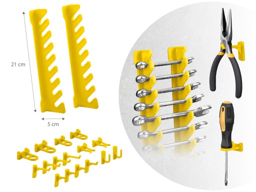 - Zestaw uchwytów na klucze pozwala na łatwe przechowywanie kluczy, zapewniając ich wygodne i bezpieczne trzymanie w zasięgu ręki.