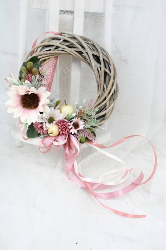 Jesienny, delikatny i uroczy wianek wiklinowy o średnicy 20cm (z dekoracją około 23cm)
