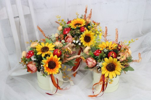 Kompozycje wykonuje ręcznie z tego względu układ czy rodzaj ozdób i dodatków może się nieco różnić od zdjęć. Zawsze jednak zostaje zachowany styl i kolorystyka.