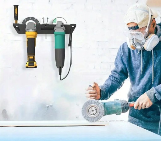 ➡️ Podwójny uchwyt – umożliwia zawieszenie dwóch szlifierek kątowych w jednym miejscu.
