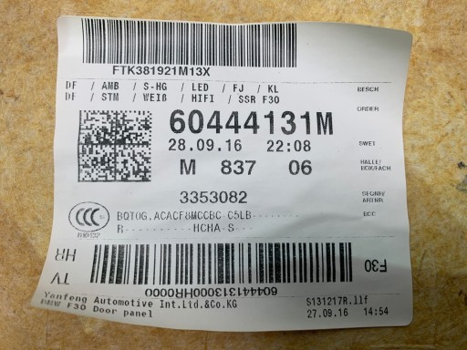 BMW F30 F31 LCI BOCZEK TAPICERKA DRZWI VENETO ROLETA