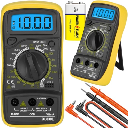 Multimetr świetnie sprawdza się w pracach domowych, w nauce, a także w zastosowaniach profesjonalnych: od elektroniki po instalacje samochodowe. Pomiar napięcia akumulatora, test tranzystora, badanie kondycji baterii – wszystko w zasięgu ręki. Dzięki funkcji testu hFE rozpoznasz także parametry tranzystorów NPN i PNP.
