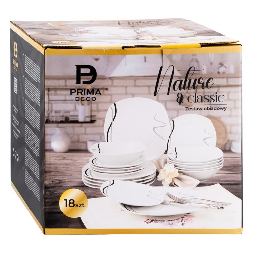 ☑️Nasza 18-częściowa zastawa obiadowa zapewni Państwu wszystkie niezbędne elementy do przygotowywania i serwowania posiłków. Wykonana z trwałej i odpornej na uszkodzenia mechaniczne oraz termiczne porcelany, ten zestaw z pewnością posłuży przez długi czas.