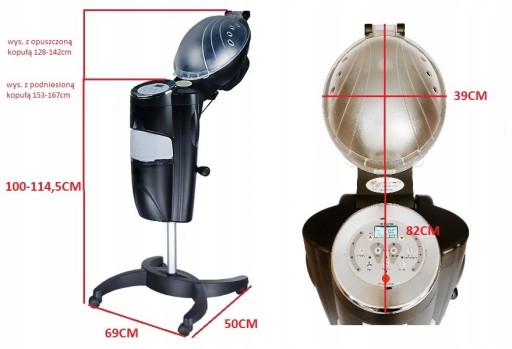 Wersja na statywie z regulowaną wysokością. Jest to innowacyjne urządzenie służące do głębokiej odbudowy włosów.