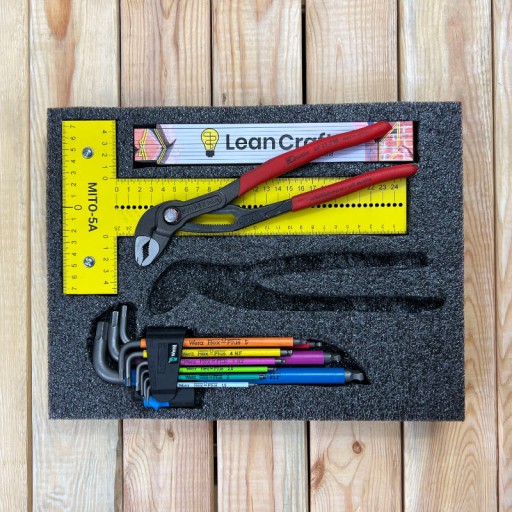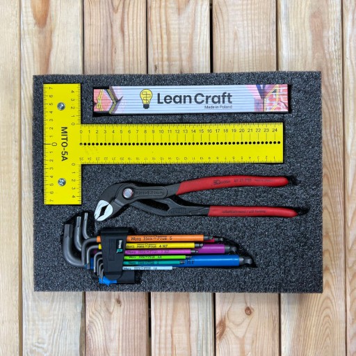 Pianka LeanFoam przeznaczona jest do samodzielnego wykonania wkładu piankowego wewnątrz walizki. Rozwiązanie to umożliwia zarówno bezpieczne przechowywanie przedmiotów oraz narzędzi, jak i bardzo szybką orientację, czy zestaw jest kompletny (brak przedmiotu = pusta kieszonka). Pianka została dopasowana do kształtu walizki dzięki czemu nie pozostały żadne wolne przestrzenie.