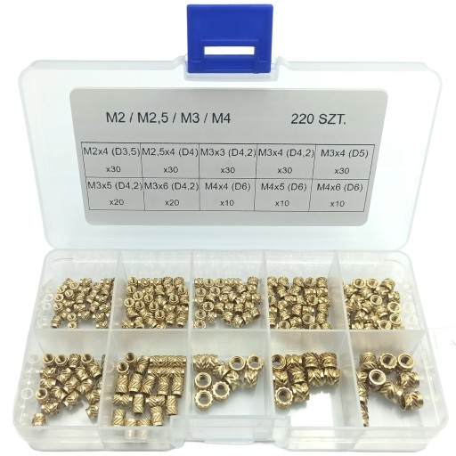 Zestaw mosiężnych wkładek gwintowanych (220 szt.)