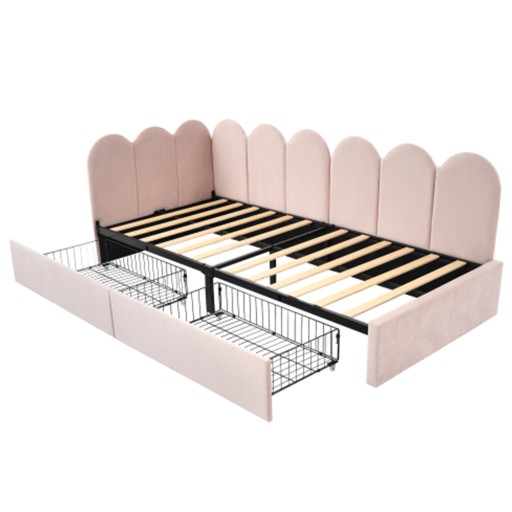 ŁÓŻKO POJEDYNCZE TAPICEROWANE 90X190CM Z SZUFLADAMI I STELAŻEM BEZ MATERACA