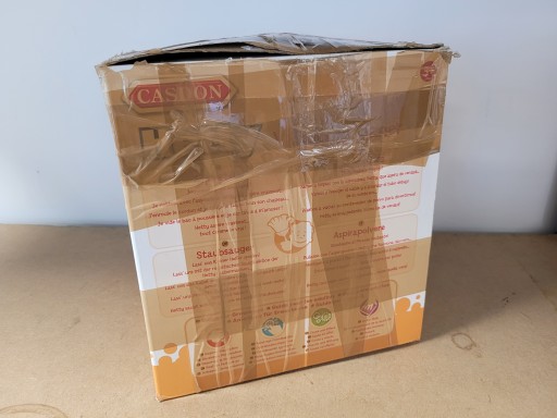 - otwierane wieko i miejsce do przechowywania w środku, dzięki czemu odkurzacz zajmuje niewiele miejsca, gdy nie jest używany, a jego części nie pogubią się,