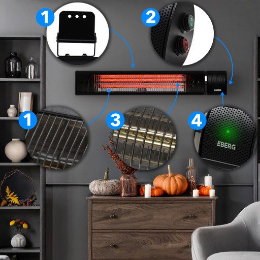 Promiennik podczerwieni EBERG® IXU 2000W z pilotem zdalnego sterowania i nową funkcją sterowania przyciskami!
