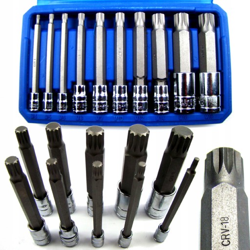 ZESTAW NASADEK KOŃCÓWKI BITY SPLINE M4-M18 DŁUGIE