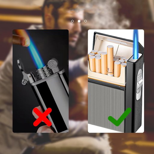 🚬🚬【Wiatroszczelna zapalniczka】Wiatroszczelna zapalniczka tej papierośnicy sprawia, że można bez problemu zapalić papierosa w wietrznym otoczeniu. Zapewnia niezawodną ochronę przed wiatrem, dzięki czemu płomień pozostaje stabilny, a papieros pali się równomiernie.