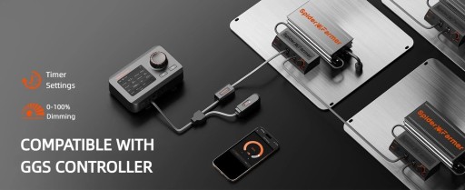 Spider Farmer SF1000 może zintegrować się z systemem GGS Smart System (nie w pakiecie) w celu zaawansowanego sterowania i monitorowania. Ciesz się zdalnym sterowaniem, symulacją wschodu/zachodu słońca i ochroną przed przegrzaniem dla swoich świateł, pomagając zmaksymalizować plony.