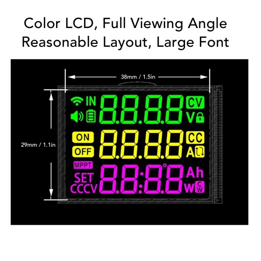 4. Wyświetlacz cyfrowy: DC Wprowadzenie do panelu zasilającego lub napięcie, prąd, temperatura, zasilanie, pojemność elektryczna, ilość elektryczna, czas działania, krzywa napięcia i prądu, parametry systemu i zasilania