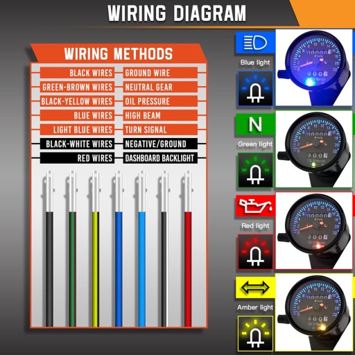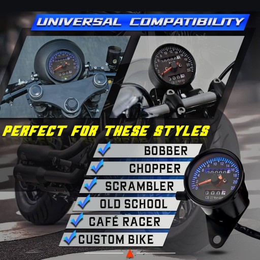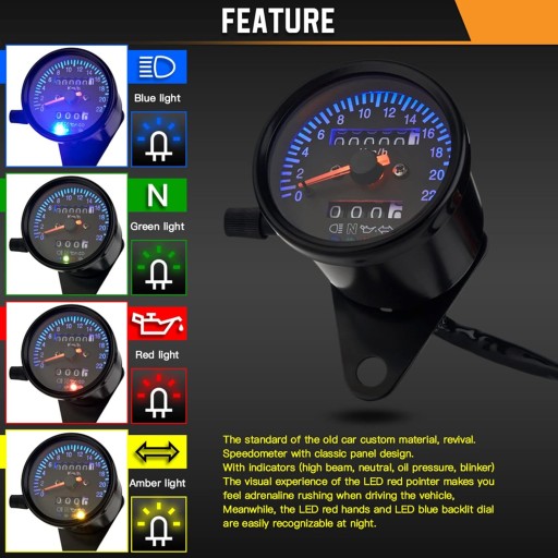 - Z lampkami kontrolnymi (światła drogowe, światło neutralne, światło ciśnienia oleju, migacz).