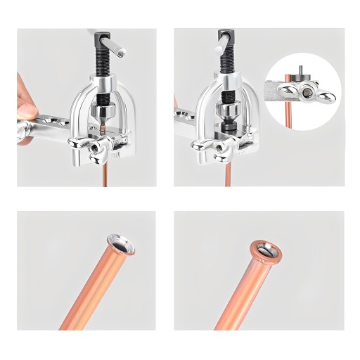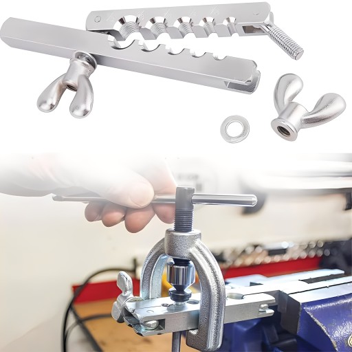 ZRÓB PODWÓJNE I JEDNE BŁYSKIE: Zaprojektowane do stosowania podczas kielichowania pojedynczych lub podwójnych odblasków w różnych materiałach: miedzianych, aluminiowych, mosiężnych, magnych i miękkich stalowych rurach przewodu hamulcowego.Narzędzie do kielichowania ma zastosowanie do średnicy 3/16",1/4",3/8",5/16",1/2"rury.