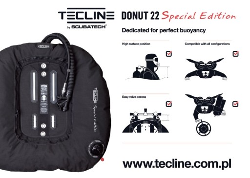 Worek ma kształt nieregularnego koła co pozwala na sprawne przetaczanie gazu w dowolnym kierunku, a tym samym na utrzymanie wybranej pozycji pod wodą. Zwiększenie szerokości worka oraz specjalna wkładka wszyta na obrysie worka dają dobre boczne trzymanie twina w nurkowaniu z dodatkowymi butlami. Dodatkowo wkładka ta spowodowała wzrost pojemności worka bez zwiększania jego obrysu - powstał mały worek o dużej pojemności. Szeroki pas w dolnej części worka pozwala wykorzystać tę dodatkową pojemność zapewniając nurkowi "wysoką" pozycję na powierzchni wody. Stabilną pozycję pod wodą utrzymujemy również dzięki łatwemu zrzutowi gazu. Tylny zawór został umieszczony "intuicyjnie". Sięgając ręką do spłuczki po prostu na nią trafiamy. Wąż inflatora położony jest centralnie tak, aby gniazdo węża znalazło się dokładnie pomiędzy butlami, co pozwala na zrzucanie gazu infaltorem bez konieczności silnego odchylania się w górę. Worek jest bardzo wąski w górnej części dając praktycznie nieograniczone możliwości konfiguracji węży i automatów oraz , co równie ważne, swobodny dostęp do zaworów. Położenie worka względem zestawu i płyty możemy ustalić wybierając jedną z dwóch par otworów na śruby mocujące worek na butlach.