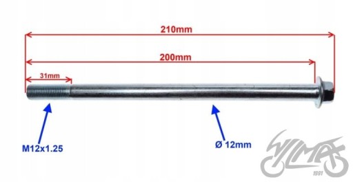 OŚ KOŁA PRZÓD M12x201 LJ50-QT-L