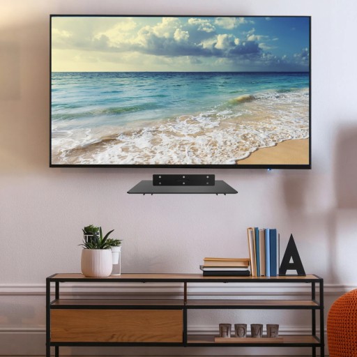 PÓŁKA SZKLANA ŚCIENNA UCHWYT POD TV DVD RTV TUNER NA DEKODER STOLIK