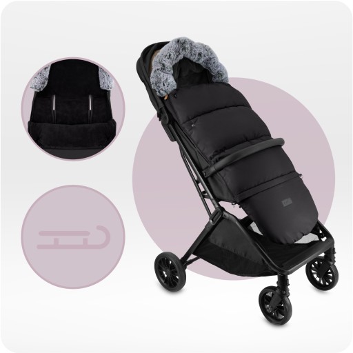 - Uniwersalny – pasuje do większości wózków spacerowych, gondoli oraz sanek