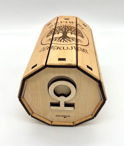 Solidne wykonanie – wysokiej jakości drewno, grawer laserowy z motywem drzewa oraz napisami NAPIWKI i DZIĘKUJEMY.