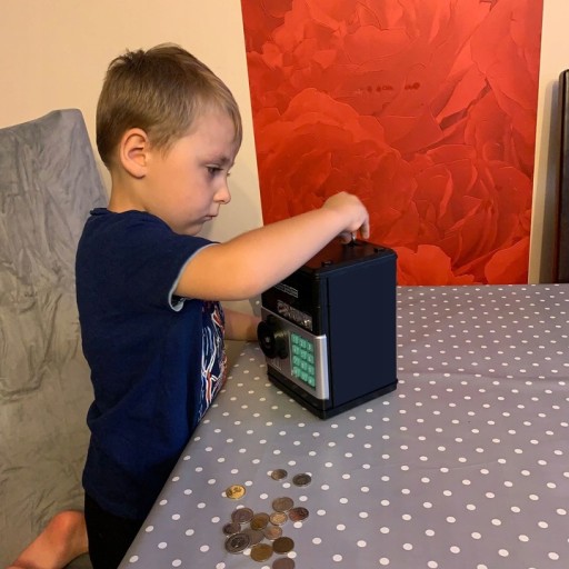 ✔️ Łatwe wkładanie i wypłacanie środków - Wrzucanie monet i „wciąganie” banknotów odbywa się w prosty, intuicyjny sposób. Wypłata jest możliwa po wpisaniu prawidłowego PIN-u, co daje dzieciom satysfakcję z kontrolowania swoich finansów.