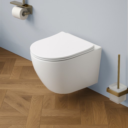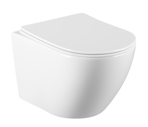 Muszla wykonana jest z ceramiki sanitarnej w kolorze śnieżnej bieli. Jej rozmiar pozwala na optymalne wykorzystanie przestrzeni, a innowacyjny systemem Rimless Tornado zapewnia funkcjonalność. W komplecie z muszlą dołączona jest deska wolnoopadająca wykonana z duroplastu, posiadająca metalowe zawiasy.