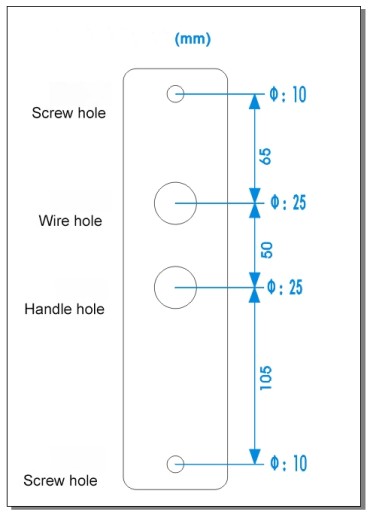 - Dolny otwór na śrubę: Średnica Φ10mm, umieszczony 105mm poniżej otworu uchwytu.