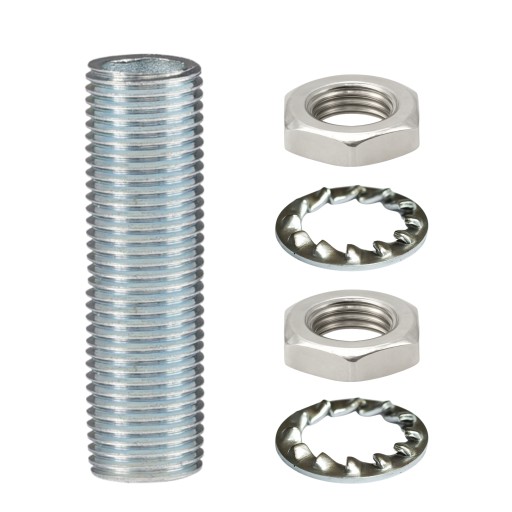 КОМПЛЕКТ ТРУБКИ С РЕЗЬБОЙ НИППЕЛЬ М10 Х 50 ММ – ДЛЯ ЛАМП И ГАЙКИ ОСВЕЩЕНИЯ