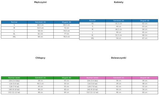 - Wybranego ROZMIARU KOSZULEK z rozbiciem na męska damska dziewczynka chłopiec