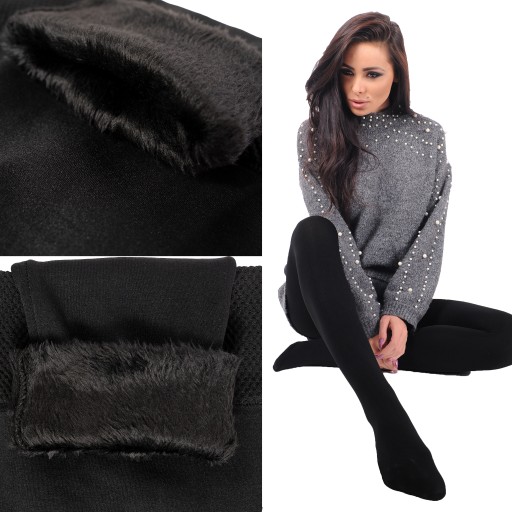 OCIEPLANE Rajstopy TERMICZNE GRUBE futro CZARNE gładkie MEGA CIEPŁE na zimę