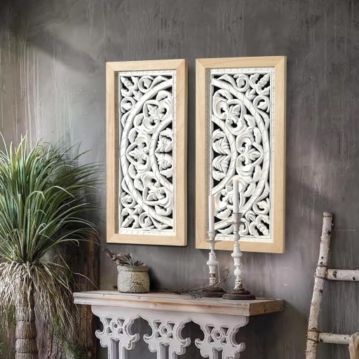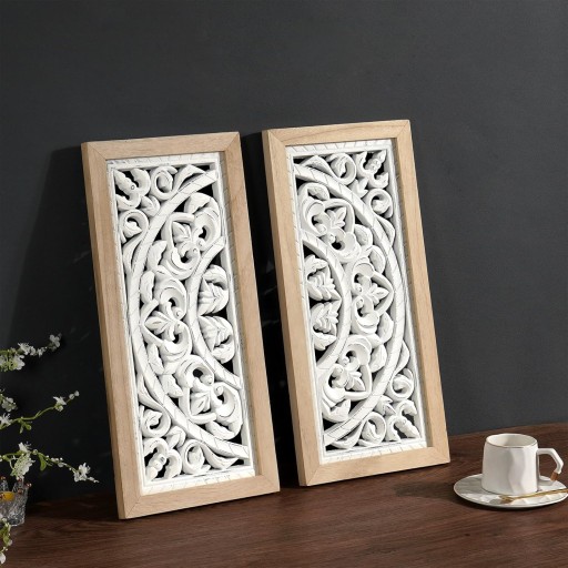- Artystyczna dekoracja ścienna: Wprowadź do domu kawałek tradycyjnego rzemiosła dzięki naszemu drewnianemu obrazowi ściennemu. Rzeźbiony biały motyw mandali nada Twojemu pomieszczeniu wyjątkowego i artystycznego charakteru. Rzeźbiony detal z drewna oczaruje Cię na pierwszy rzut oka.