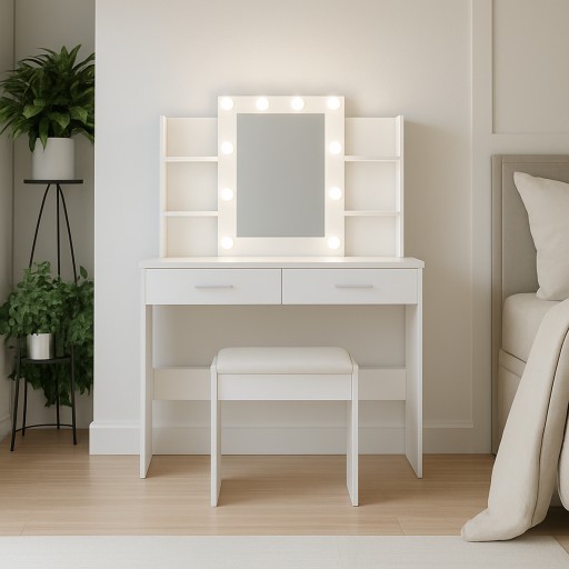 ✨ W zestawie: toaletka, taboret, lustro z lampkami LED (10 LED)