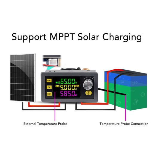 1. Zmienny zasilacz: Z zakresem napięcia wejściowego DC 12-72V, zakres napięcia wyjściowego DC 0-65V, maksymalny prąd wyjściowy 9A i maksymalną moc wyjściową 585 W, odpowiedni dla wielu różnych zastosowań