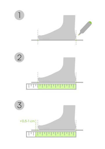 Do wymiaru stopy dodaj około 0,5 do 1 cm i porównaj z długością wkładki