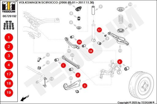 AUDI, SEAT, SKODA, VW EOS, GOLF, GOLF SYNCRO / 4MOTION, JETTA, PASSAT, PASSAT SYNCRO / 4MOTION, SCIROCCO, TIGUAN, TOURAN - KOMPLET TULEI DO TYLNEGO ZAWIESZENIA