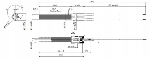 - Okablowanie z certyfikatem UL/EC (kabel odporny na temperaturę) 200-500°C)