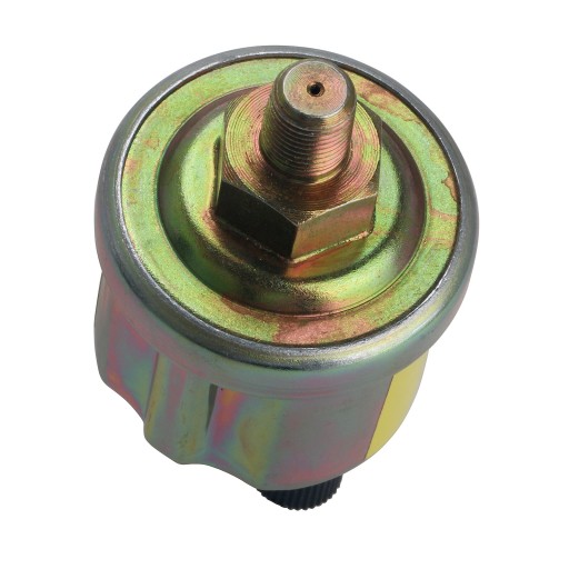 Czujnik ciśnienia oleju w obudowie z ocynkowanej blachy stalowej posiada samouszczelniający gwint przyłączeniowy 1/8" NPT i mierzy ciśnienie do 10 barów.