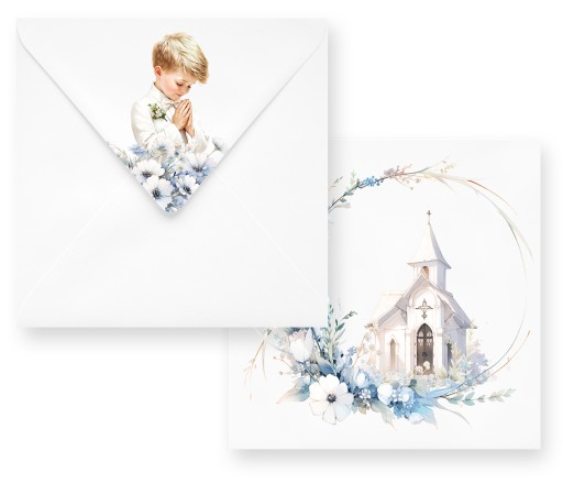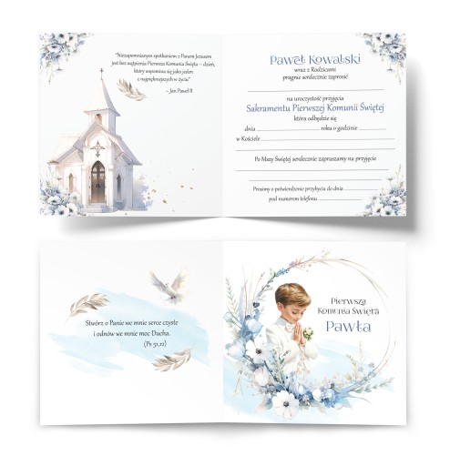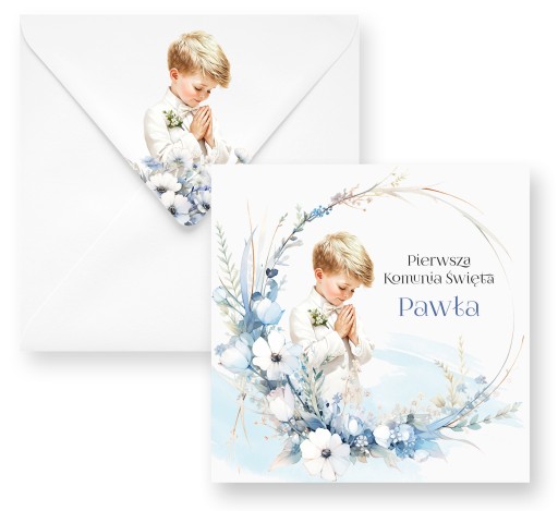 ZAPROSZENIA NA KOMUNIĘ DLA CHŁOPCA + IMIĘ + KOPERTA