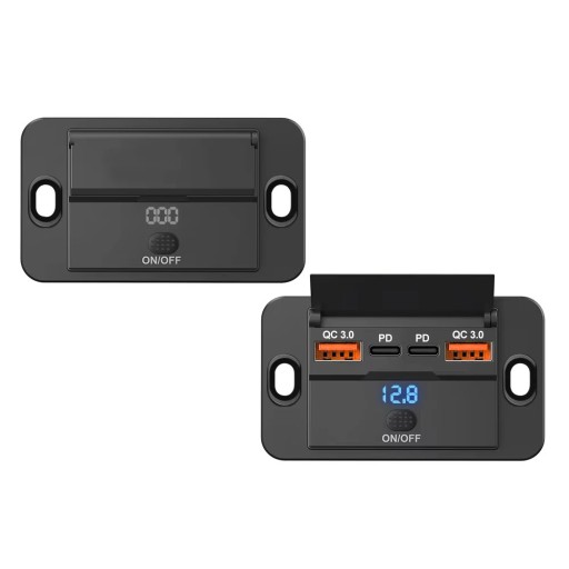 Gniazdo samochodowe montażowe 12V 24V 4 USB PD QC 3.0 ON OFF 96W Klapka