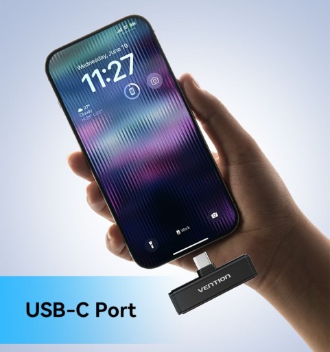 Po prostu podłącz odbiornik do smartfona, tabletu lub laptopa z portem USB-C Tyle! nagrywaj! Bez aplikacji, kabli czy parowania Bluetooth, zestaw łączy się automatycznie.
